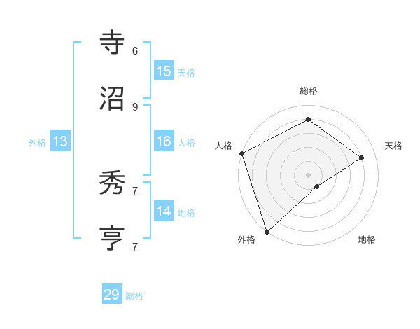 寺沼 秀亨さんの総格は29画の4点!