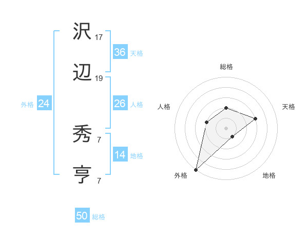 沢辺 秀亨さんの総格は50画の2点!