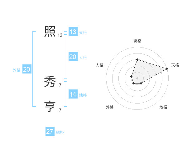 照 秀亨さんの天格は13画の5点!