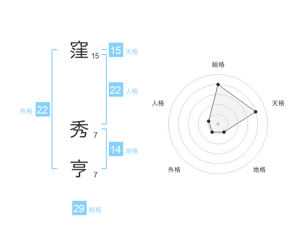 窪 秀亨さんを姓名の画数から五運を鑑定