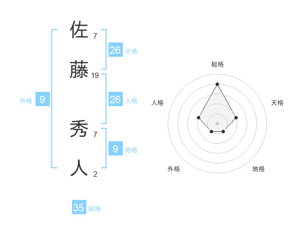 佐藤 秀人さんの総格は35画の4点!