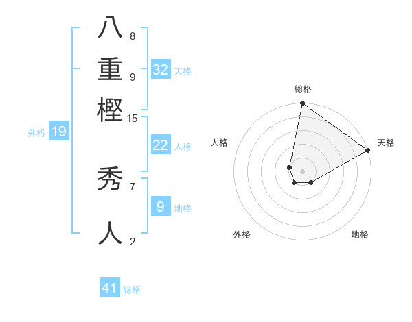 八重樫 秀人さんの天格は32画の5点!