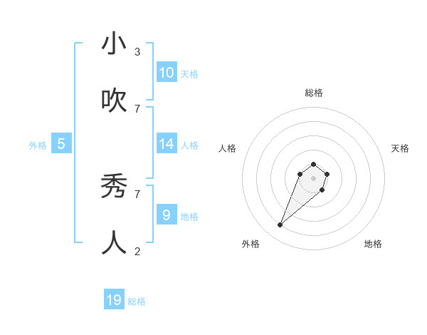 小吹 秀人さんの総格は19画の1点!