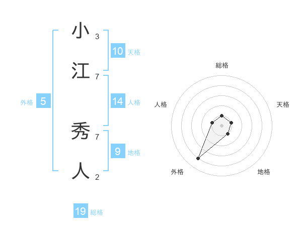 小江 秀人さんの総格は19画の1点!