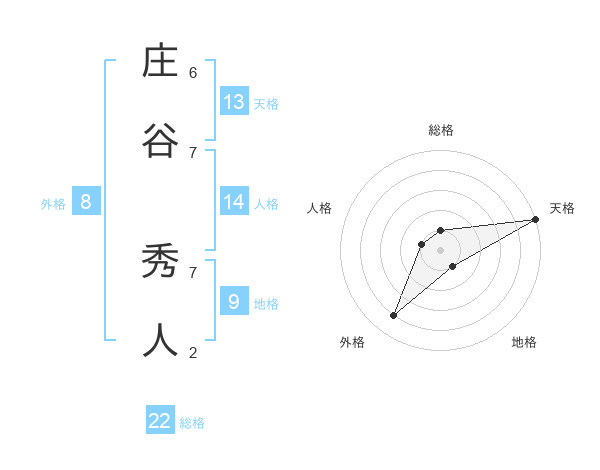庄谷 秀人さんの総格は22画の1点!