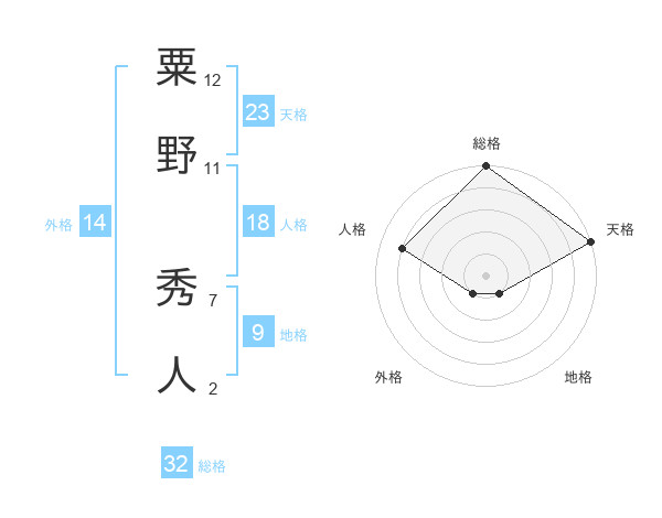 粟野 秀人さんの総格は32画の5点!
