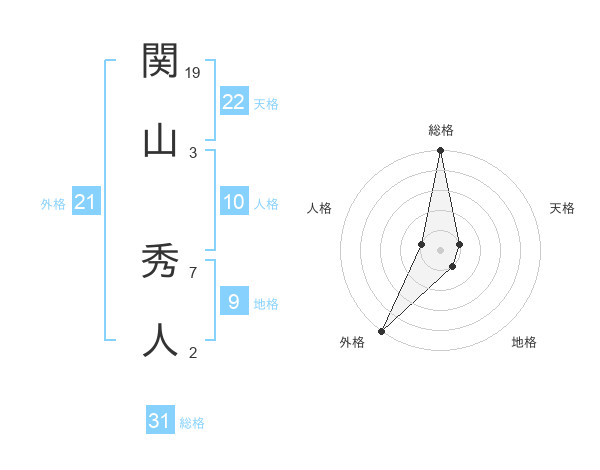 関山 秀人さんの総格は31画の5点!