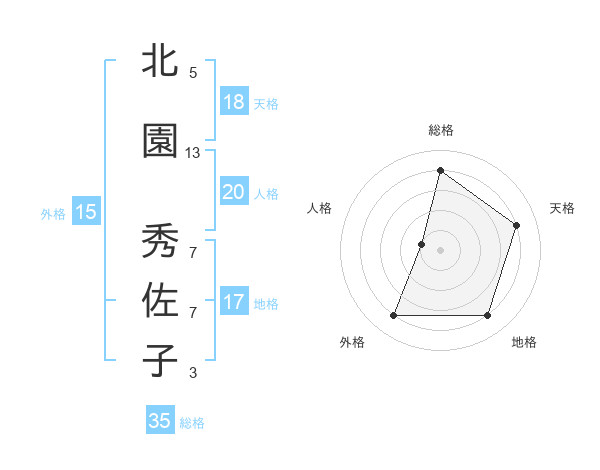 北園 秀佐子さんを姓名の画数から五運を鑑定