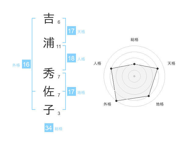 吉浦 秀佐子さんの総格は34画の2点