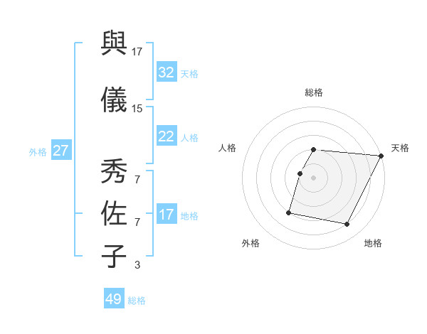 與儀 秀佐子さんを姓名の画数から五運を鑑定