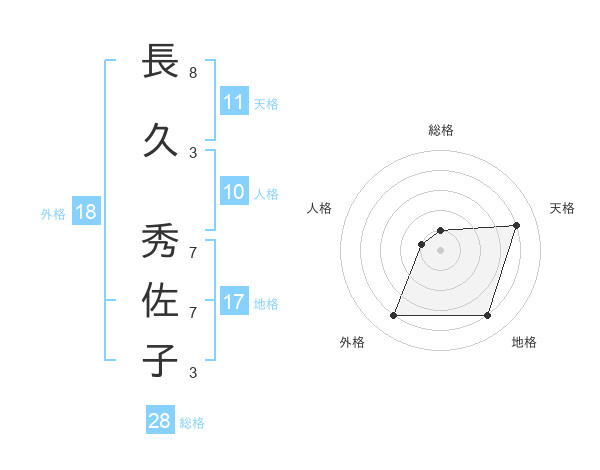長久 秀佐子さんの天格は11画の4点!