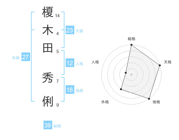 榎木田 秀俐さんの天格は23画の5点!