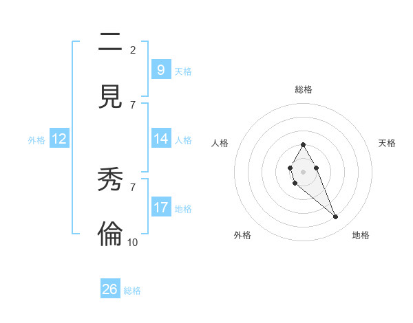 二見 秀倫さんの外格は12画の1点!