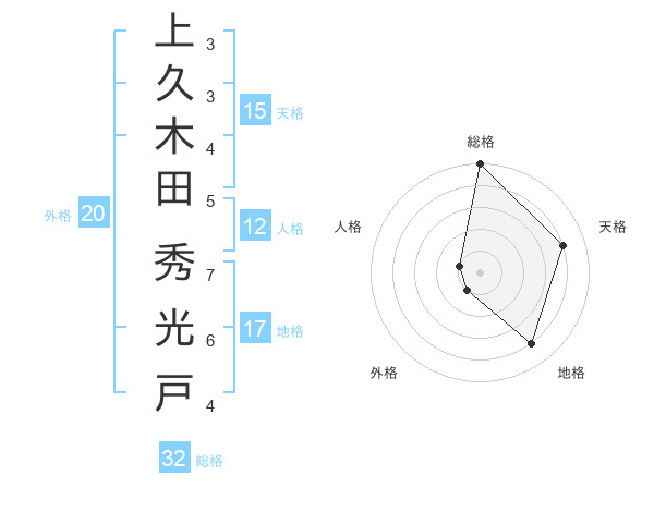 上久木田 秀光戸さんを姓名の画数から五運を鑑定