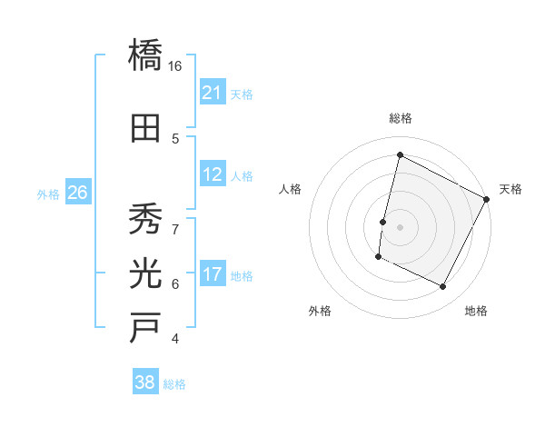 橋田 秀光戸さんを姓名の画数から五運を鑑定