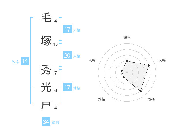 毛塚 秀光戸さんの天格は17画の4点!