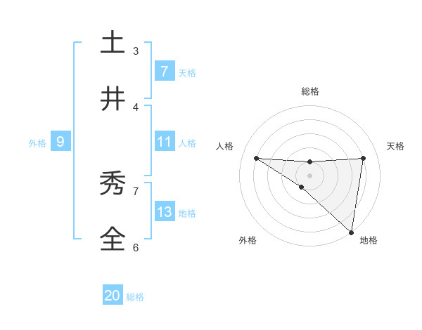 土井 秀全さんの地格は13画の5点!