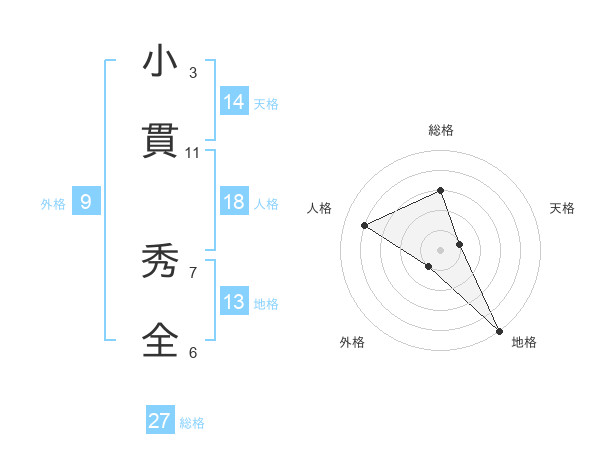小貫 秀全さんの総格は27画の3点!