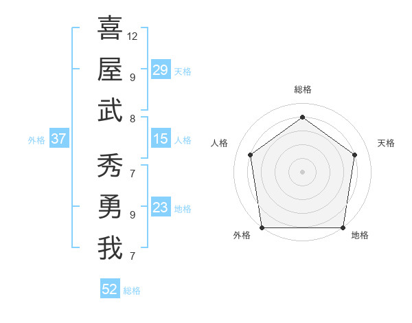 喜屋武 秀勇我さんを姓名の画数から五運を鑑定