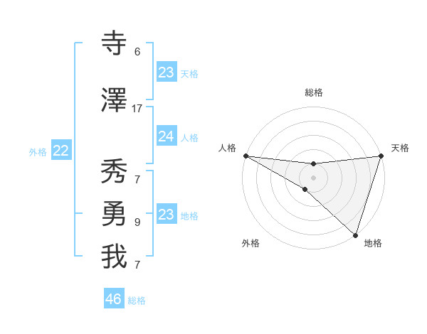 寺澤 秀勇我さんを姓名の画数から五運を鑑定