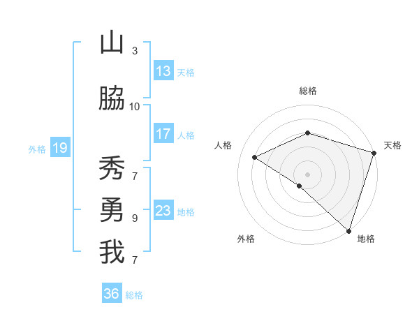 山脇 秀勇我さんの総格は36画の3点!