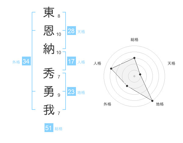 東恩納 秀勇我さんを姓名の画数から五運を鑑定
