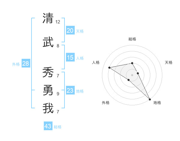清武 秀勇我さんを姓名の画数から五運を鑑定