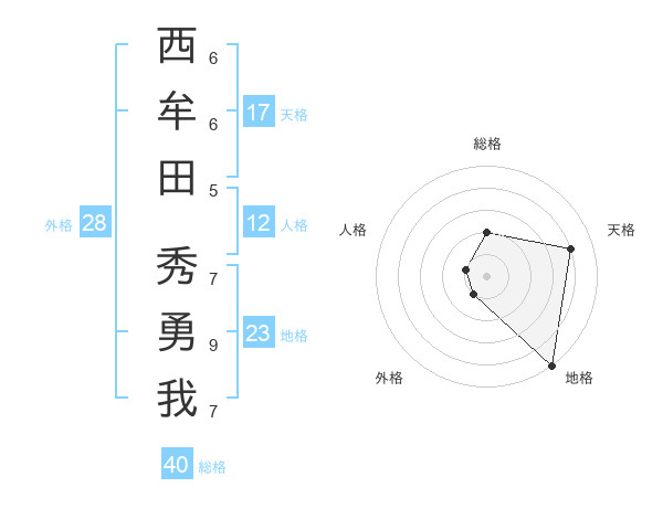 西牟田 秀勇我さんを姓名の画数から五運を鑑定