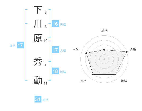 下川原 秀動さんを姓名の画数から五運を鑑定