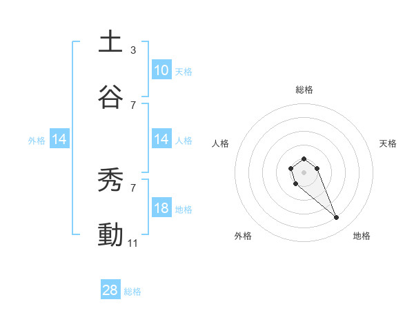 土谷 秀動さんを姓名の画数から五運を鑑定