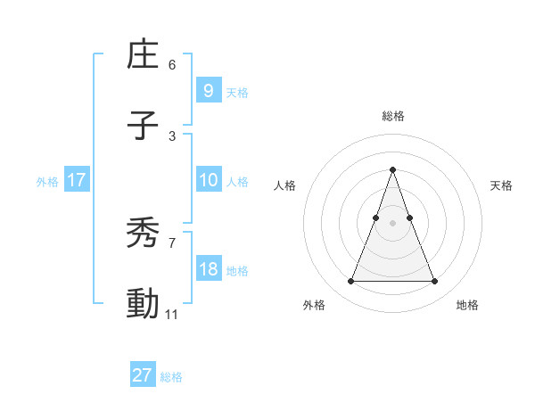 庄子 秀動さんの総格は27画の3点!