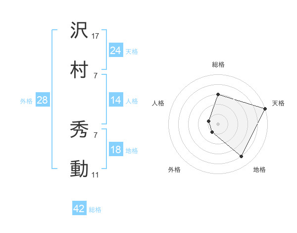 沢村 秀動さんを姓名の画数から五運を鑑定