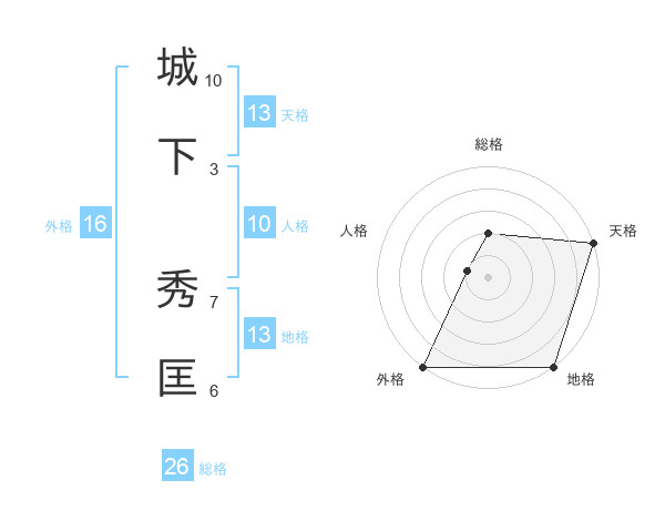 城下 秀匡さんを姓名の画数から五運を鑑定