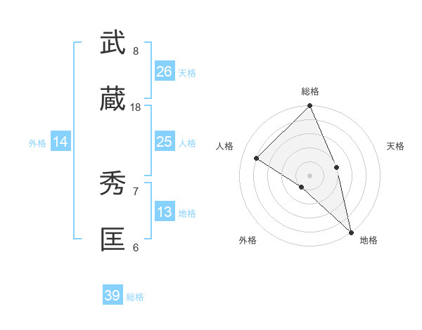 武蔵 秀匡さんを姓名の画数から五運を鑑定