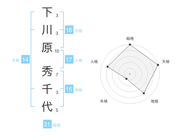 下川原 秀千代さんを姓名の画数から五運を鑑定