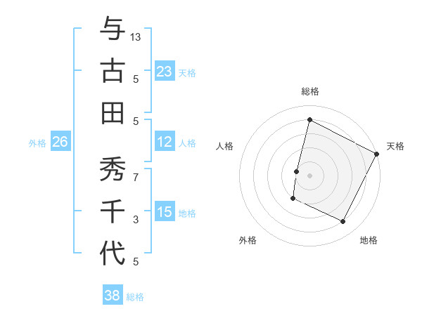 与古田 秀千代さんを姓名の画数から五運を鑑定