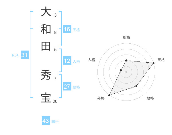 大和田 秀宝さんを姓名の画数から五運を鑑定