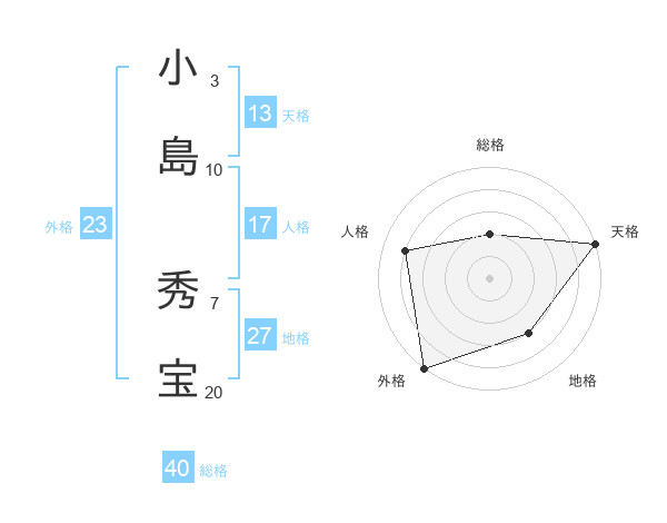 小島 秀宝さんを姓名の画数から五運を鑑定