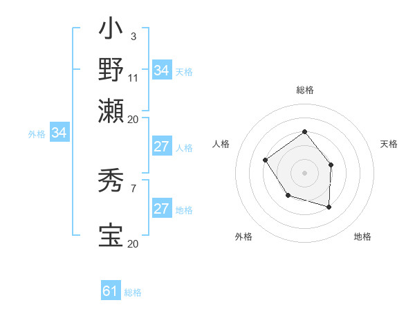 小野瀬 秀宝さんを姓名の画数から五運を鑑定