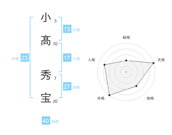 小髙 秀宝さんの外格は23画の5点!