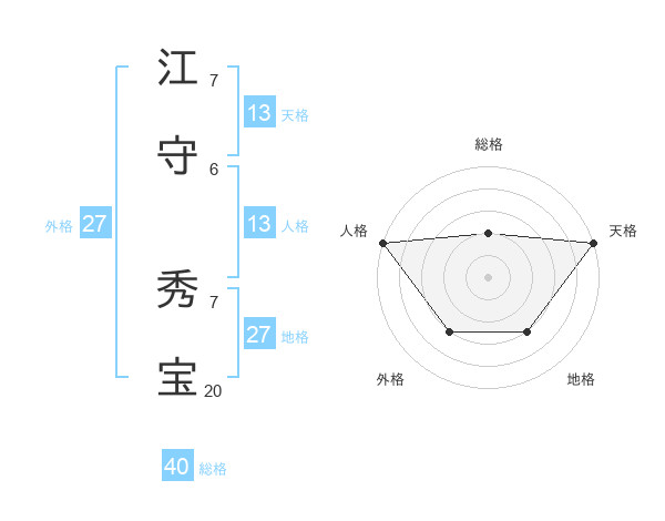 江守 秀宝さんを姓名の画数から五運を鑑定