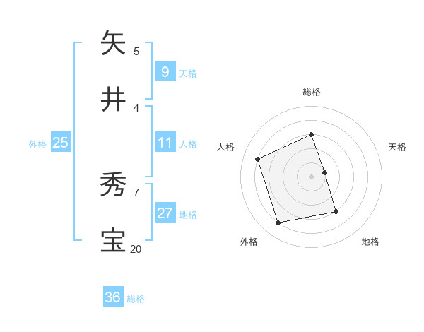 矢井 秀宝さんを姓名の画数から五運を鑑定