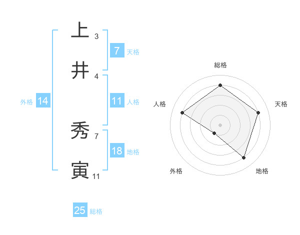 上井 秀寅さんを姓名の画数から五運を鑑定