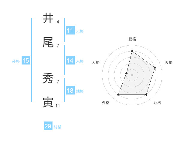 井尾 秀寅さんの総格は29画の4点!