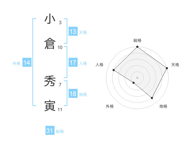 小倉 秀寅さんを姓名の画数から五運を鑑定