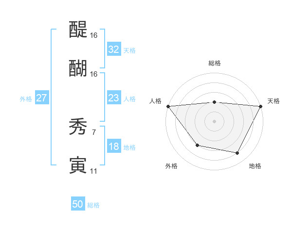 醍醐 秀寅さんを姓名の画数から五運を鑑定