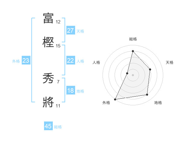 富樫 秀將さんの総格は45画の4点!