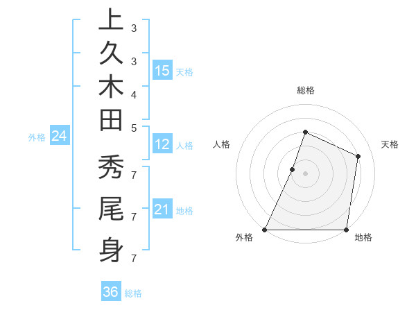 上久木田 秀尾身さんを姓名の画数から五運を鑑定