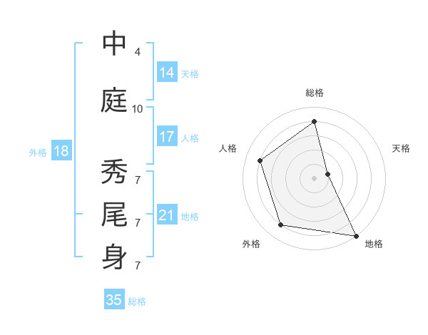 中庭 秀尾身さんを姓名の画数から五運を鑑定