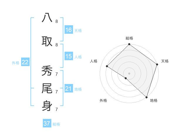 八取 秀尾身さんを姓名の画数から五運を鑑定